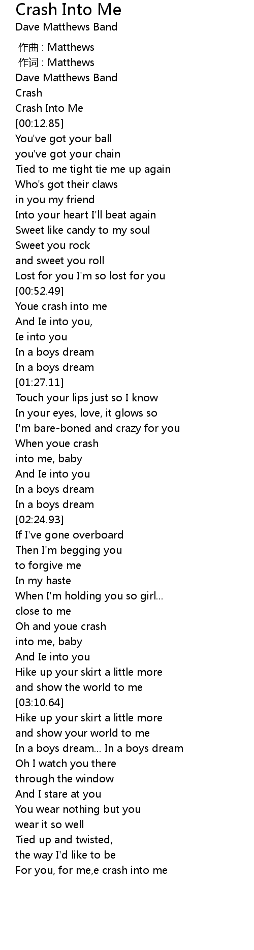 | [00:10.85] | Crash Into Me |