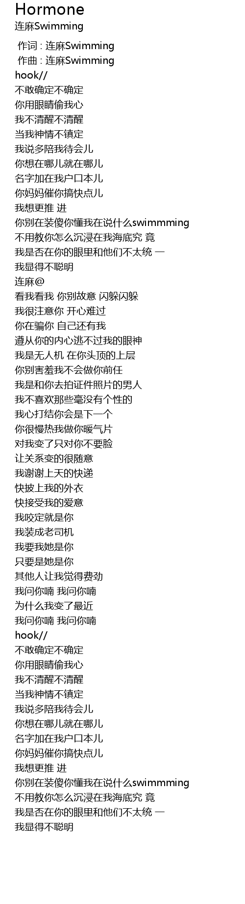 | [02:11.957] | 你别在装傻你懂我在说什么swimmming |