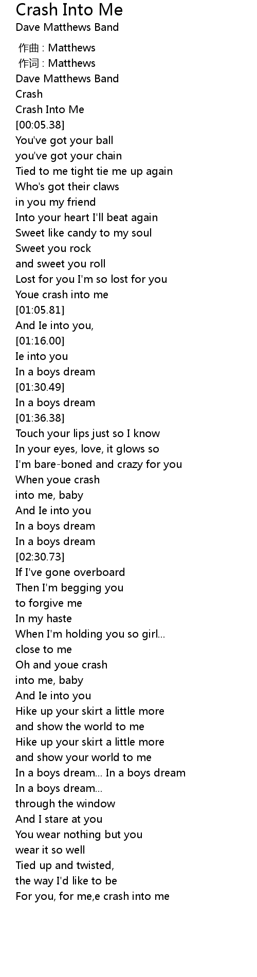 | [00:03.70] | Crash Into Me |