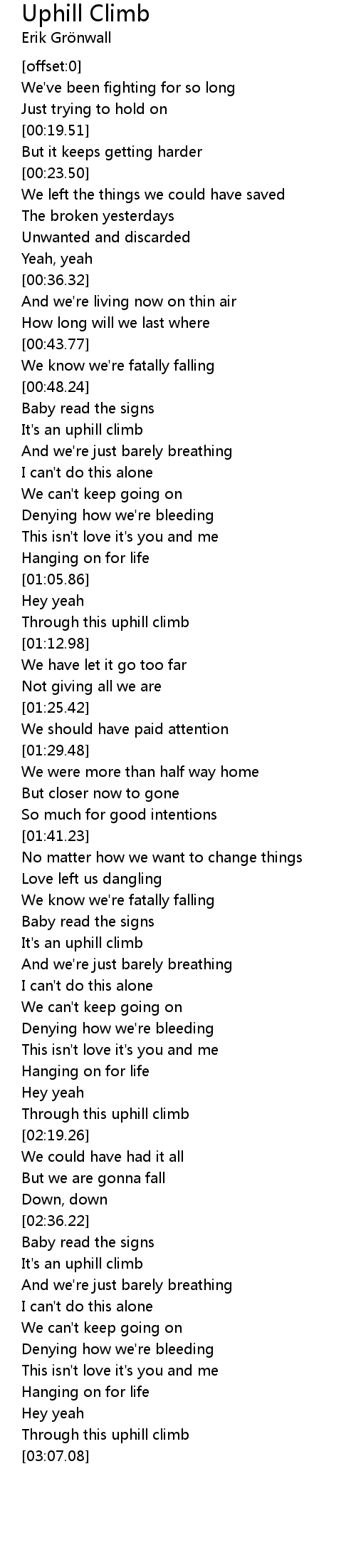 Through this uphill climb |