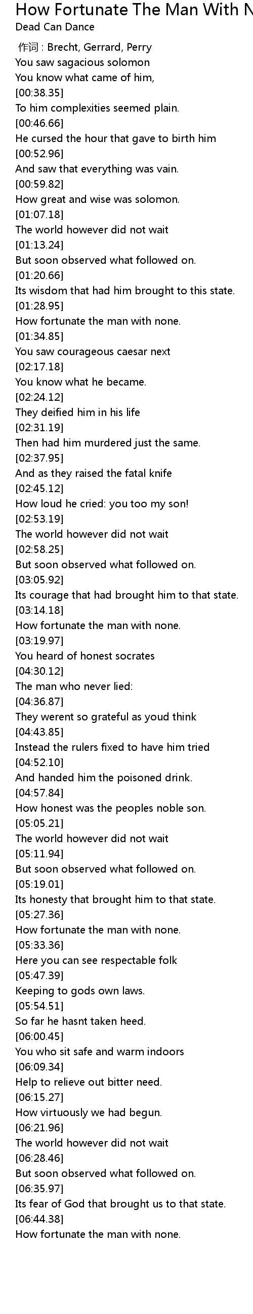| [00:00.00] | 作词 : Brecht, Gerrard, Perry |