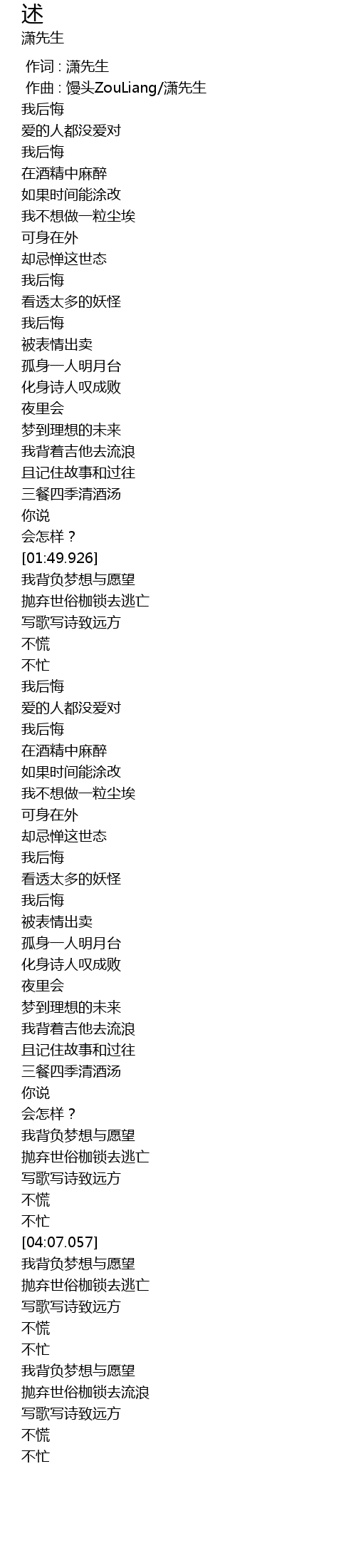 | [01:03.689] | 我后悔 |