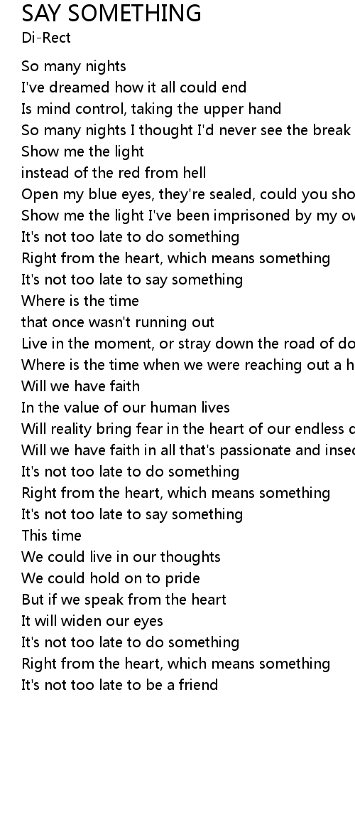 It's not too late to say something |