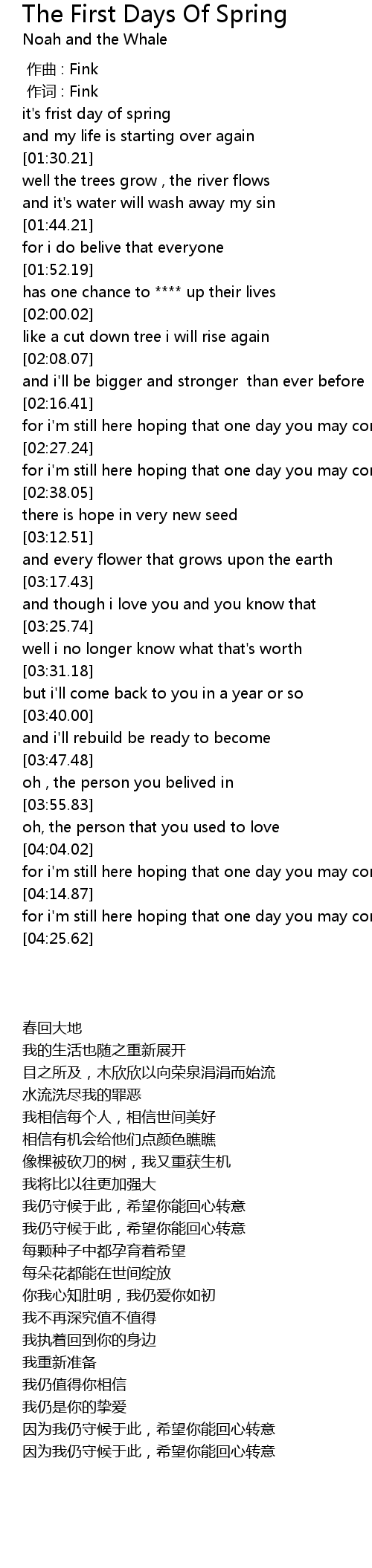 | [01:20.91] | it's frist day of spring |