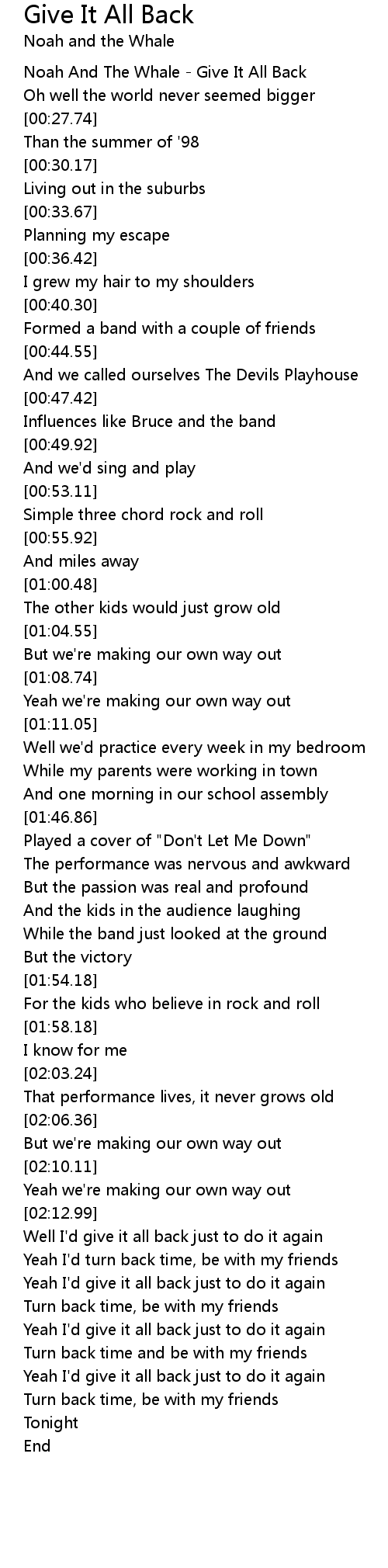 Noah And The Whale - Give It All Back |