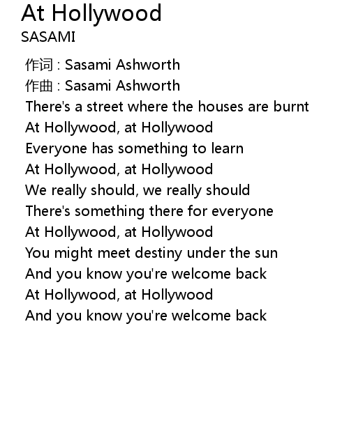 | [00:00.000] | 作词 : Sasami Ashworth |