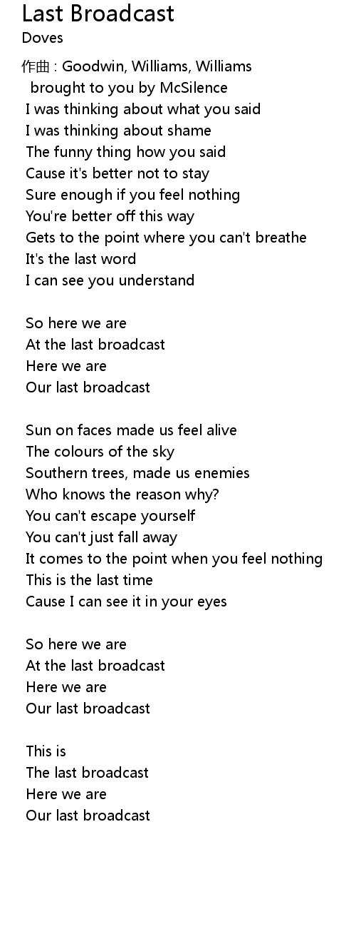 | 歌曲 | Last Broadcast |
