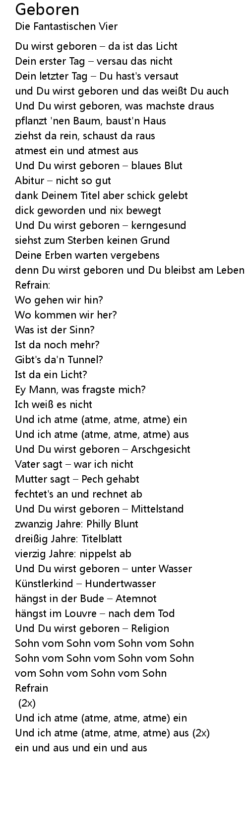 | und Du wirst geboren und das weißt Du auch | |
