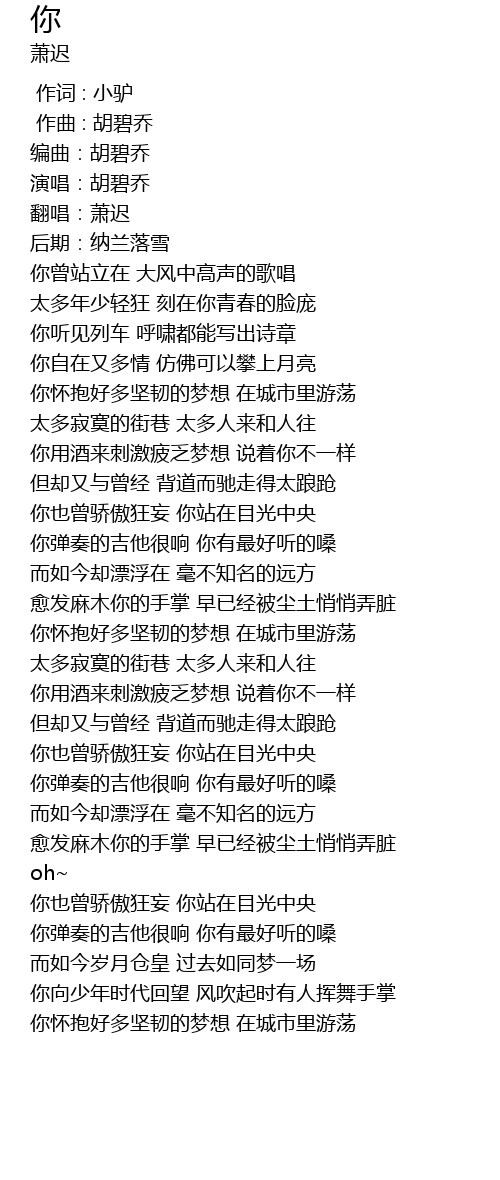 | [00:01.000] | 作曲 : 胡碧乔 |