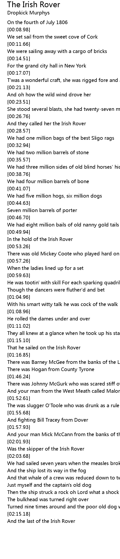 And they called her the Irish Rover |
