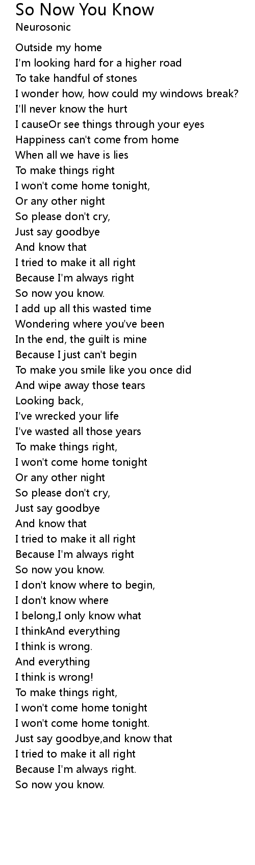 And know that |