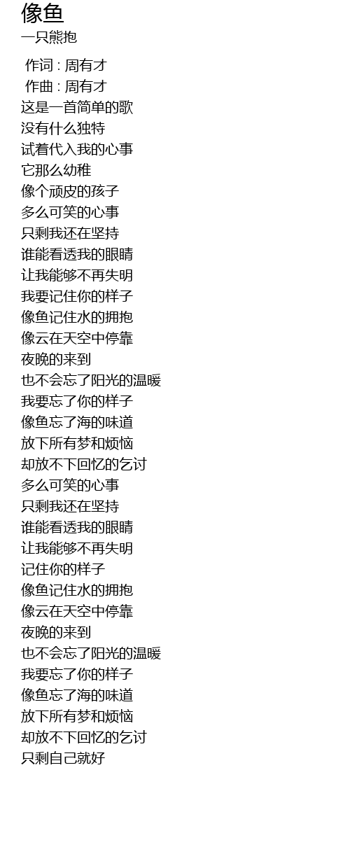 | [01:30.938] | 像鱼记住水的拥抱 |
