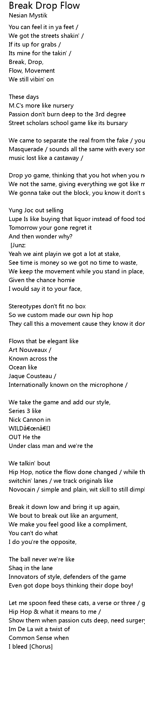 | Hip Hop, notice the flow done changed / while the rest following trend, we switchin' lanes / we track originals like | |