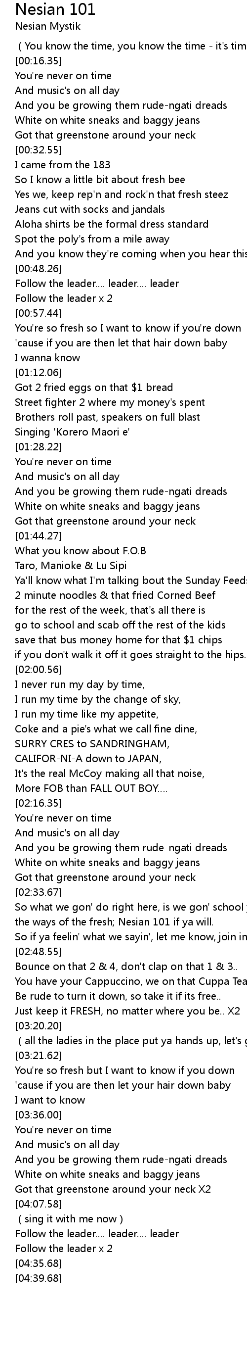 | [02:39.62] | the ways of the fresh Nesian 101 if ya will. |