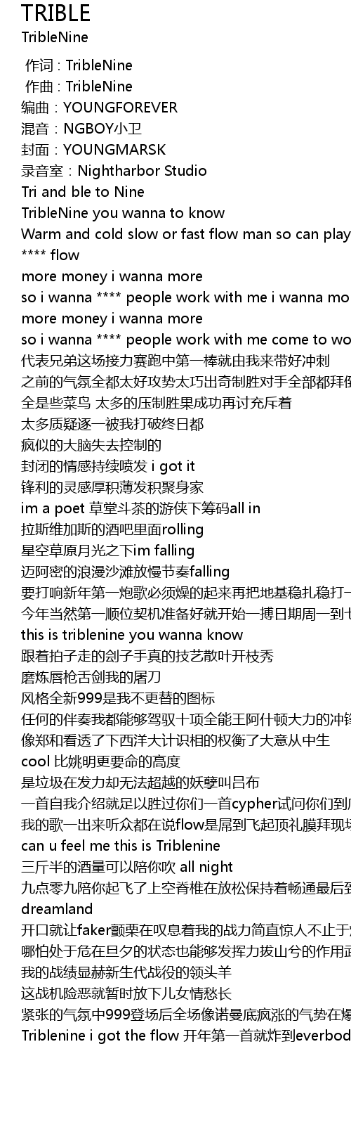 | [02:39.646] | Triblenine i got the flow 开年第一首就炸到everbody know |