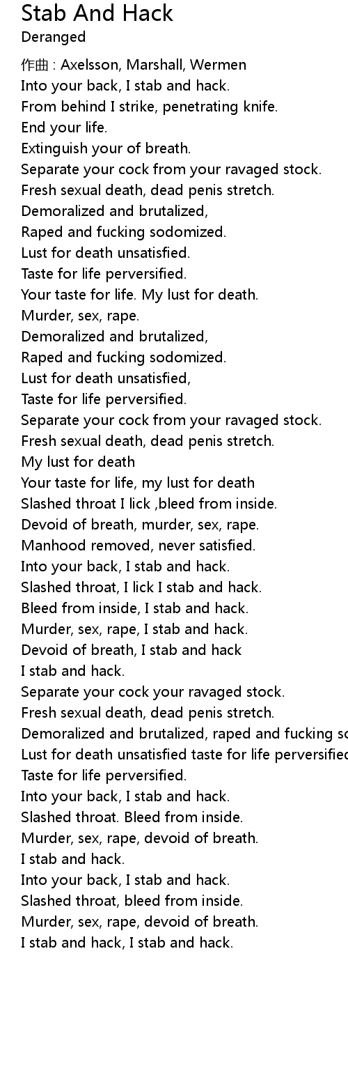 | Demoralized and brutalized, raped and fucking sodomized. | |