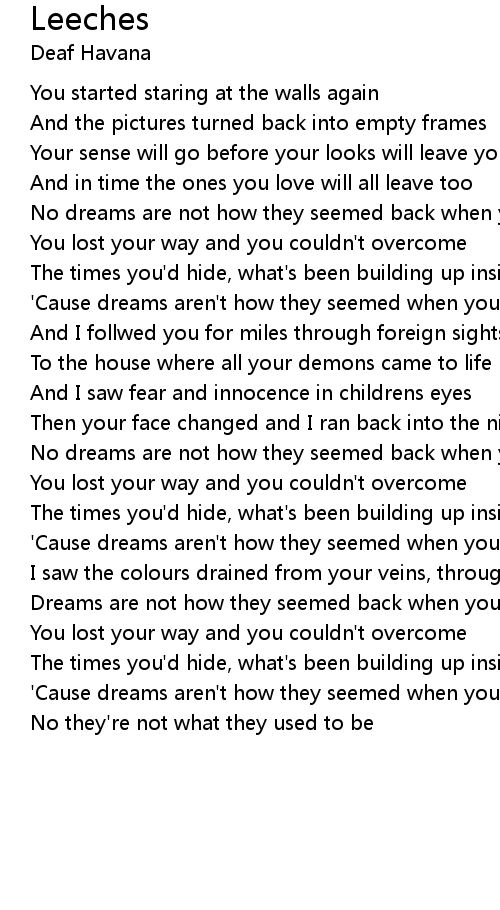 I saw the colours drained from your veins, through the teeth of leeches |
