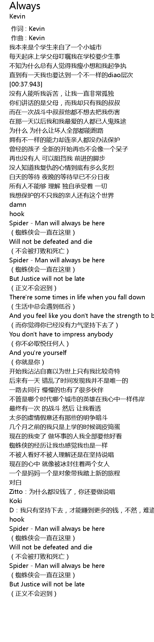 | [01:33.937] | (蜘蛛侠会一直在这里) |