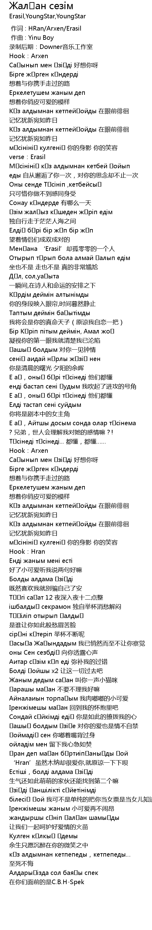 | [02:09.590] | Қран деп маған бұртиіпғаныңды қой ‘Hran’虽然木纳却很爱你,就原谅一下下呗 |
