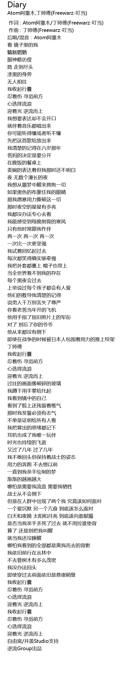 | [00:00.000] | 作词 : Atom阿童木/丁师傅(Freewarz-叮当) |