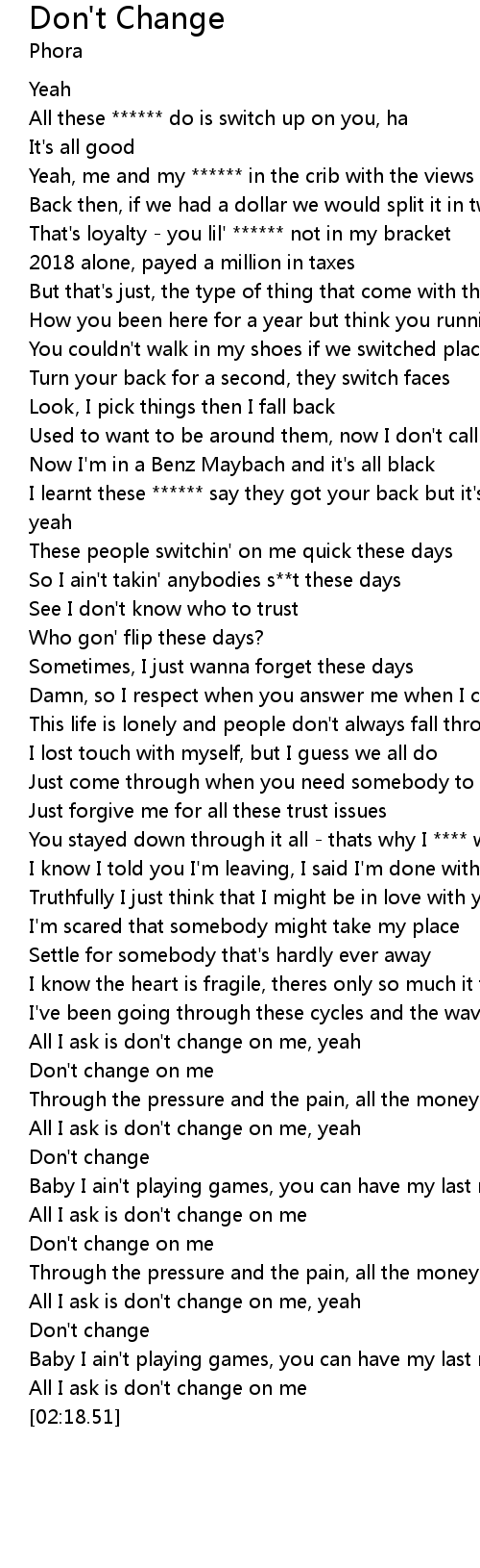 All I ask is don't change on me, yeah |