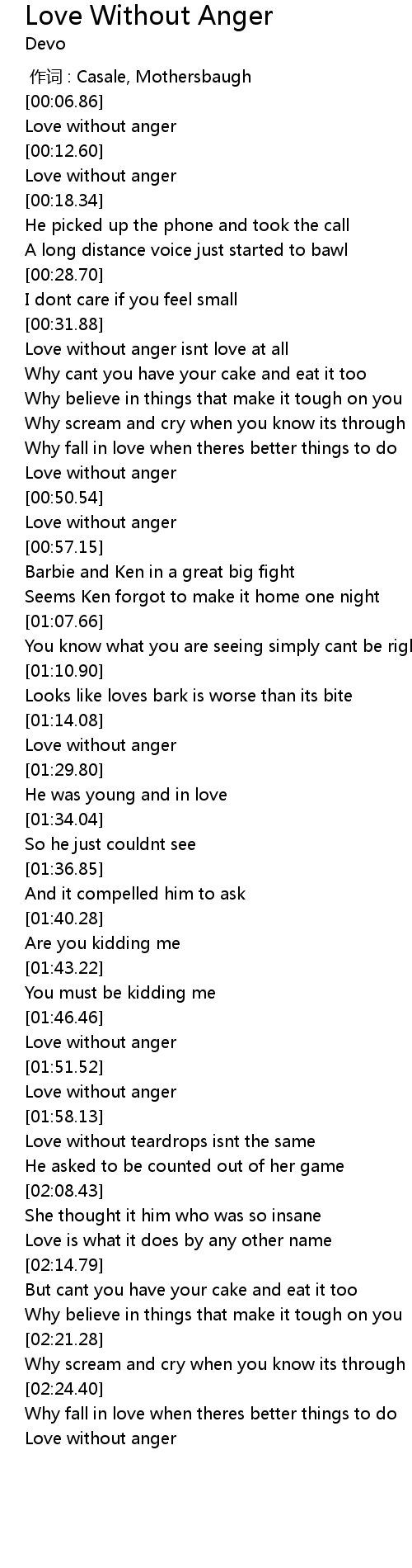 | [01:56.01] | Love without anger |