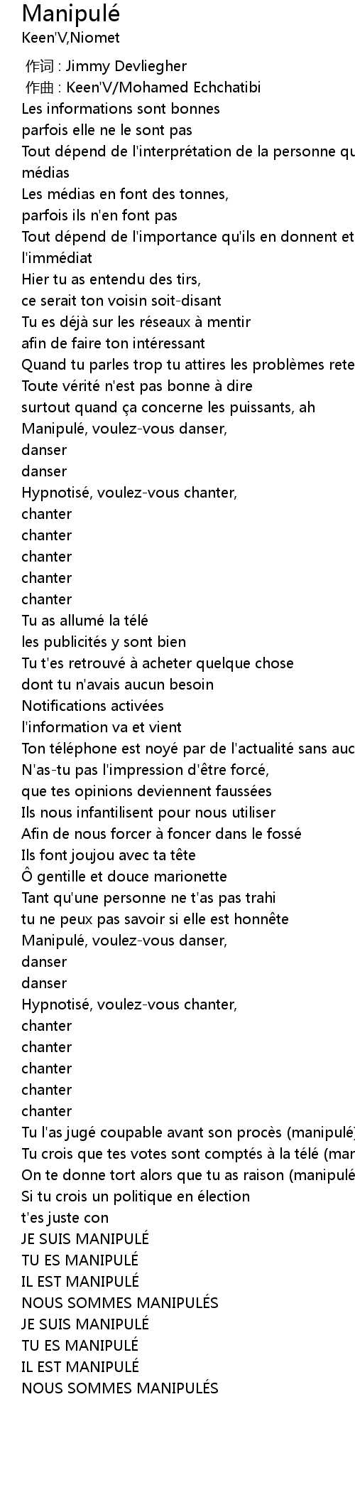 | [02:55.98] | JE SUIS MANIPULÉ |
