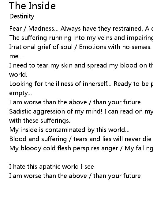 Sadistic aggression of my mind! I can read on my blood. I am intended to live with these sufferings. |