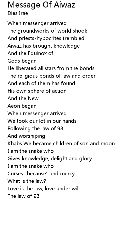 | Love is the law, love under will | |