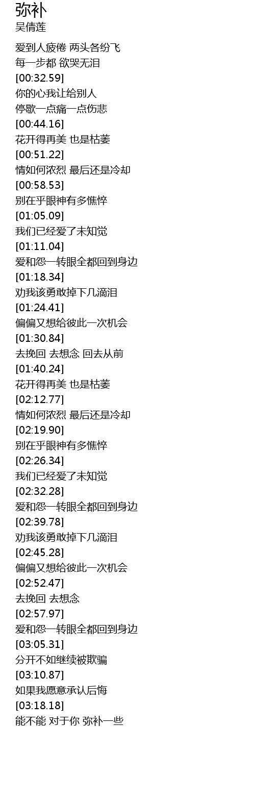 | [03:18.75] | néng bù néng duì yú nǐ mí bǔ yī xiē |