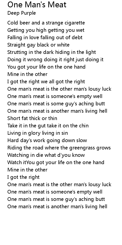 One man's meat is some guy's aching butt |