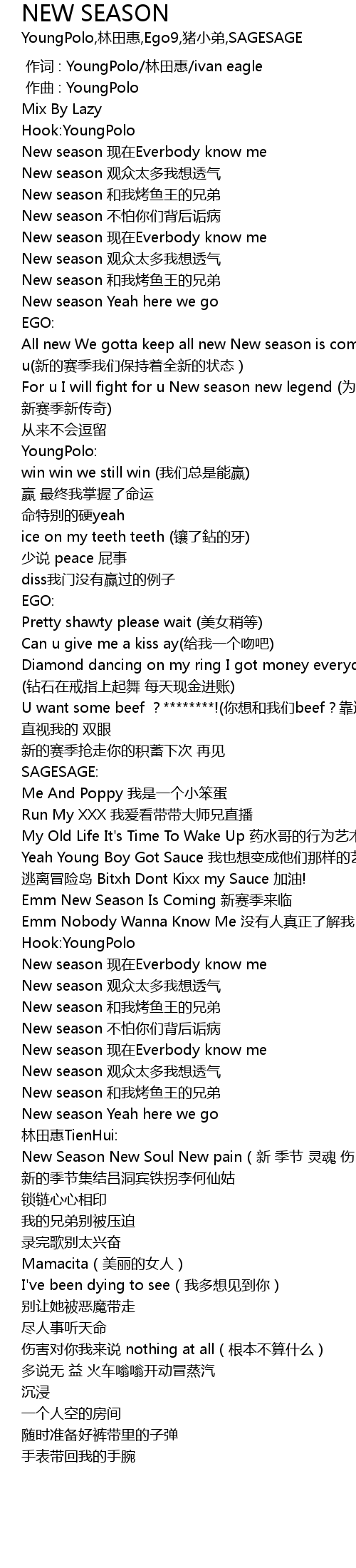 [00:10.476] New season xiàn zài Everbody know me