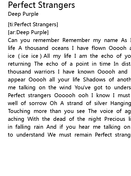 | [00:19.339] | Can you remember Remember my name As I flow through your life A thousand oceans I have flown Ooooh and cold Cold spirits of ice ice ice All my life I am the echo of your past I am returning The echo of a point in time In distant faces shine A thousand warriors I have known Ooooh and laughing As the spirits appear Ooooh all your life Shadows of another day And if you hear me talking on the wind You' ve got to understand We must remain Perfect strangers Oooooh ooh I know I must remain inside this silent well of sorrow Oh A strand of silver Hanging through the sky Touching more than you see The voice of ages in your mind Ooooh is aching With the dead of the night Precious life Your tears are lost in falling rain And if you hear me talking on the wind You' ve got to understand We must remain Perfect strangers |