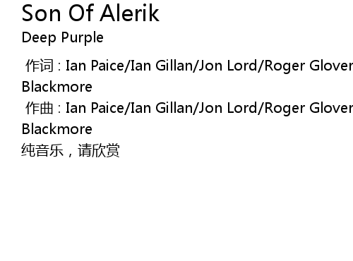 | [00:01.000] | zuo qu : Ian Paice Ian Gillan Jon Lord Roger Glover Ritchie Blackmore |