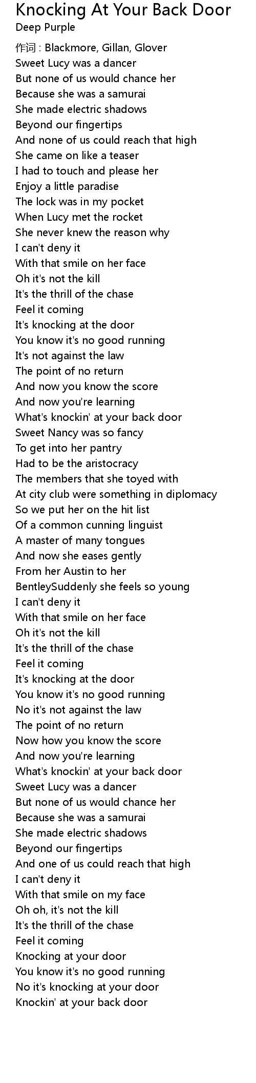 | 歌曲 | Knocking At Your Back Door |