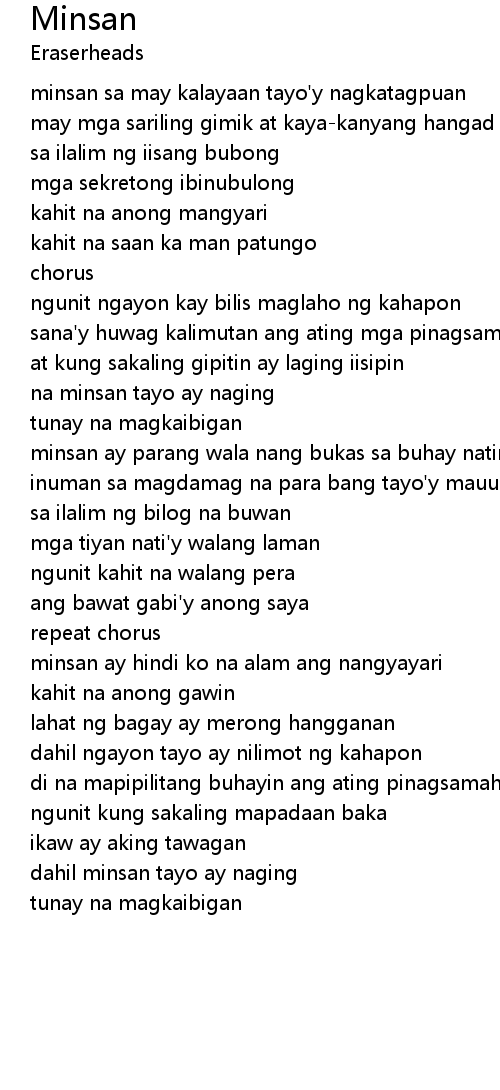 minsan sa may kalayaan tayo'y nagkatagpuan |