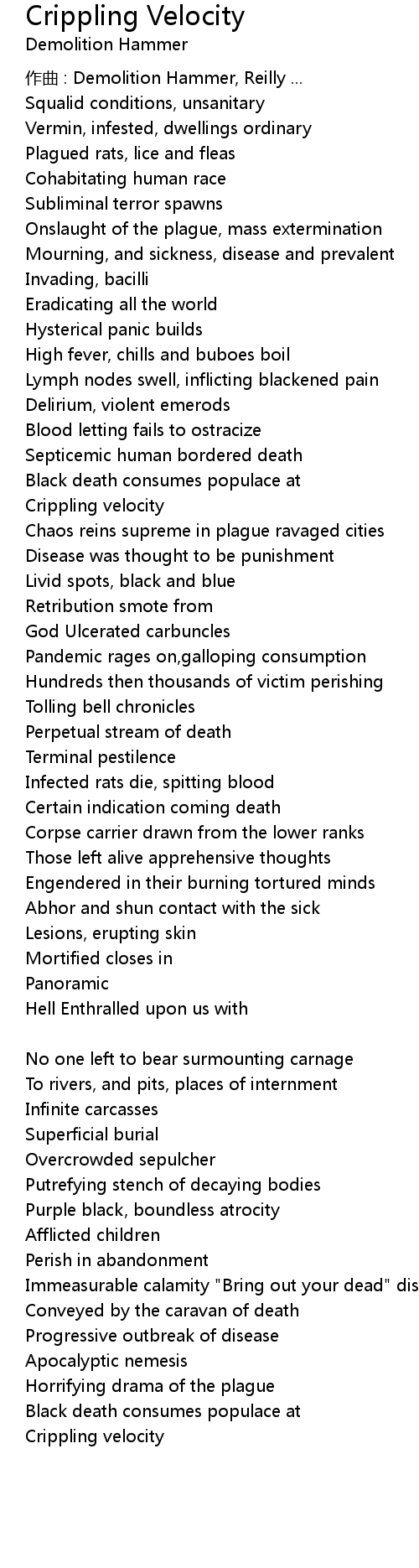 | 作曲 : Demolition Hammer, Reilly ... | |