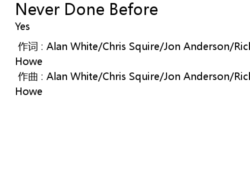 | [00:00.000] | 作词 : Alan White/Chris Squire/Jon Anderson/Rick Wakeman/Steve Howe |