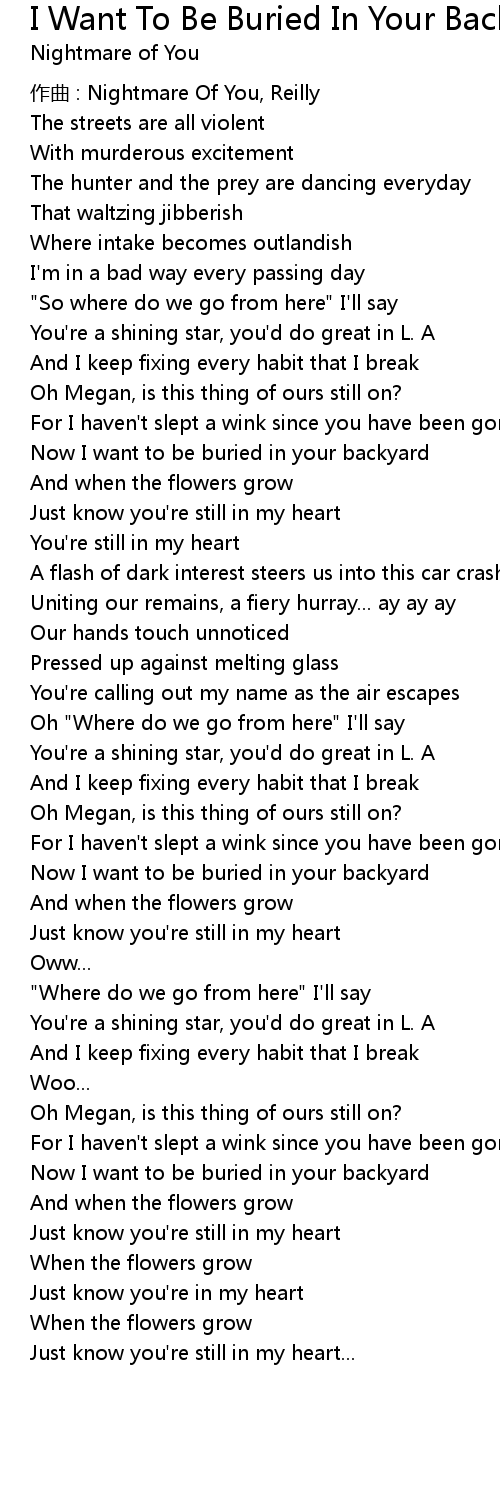| 歌曲 | I Want To Be Buried In Your Backyard |