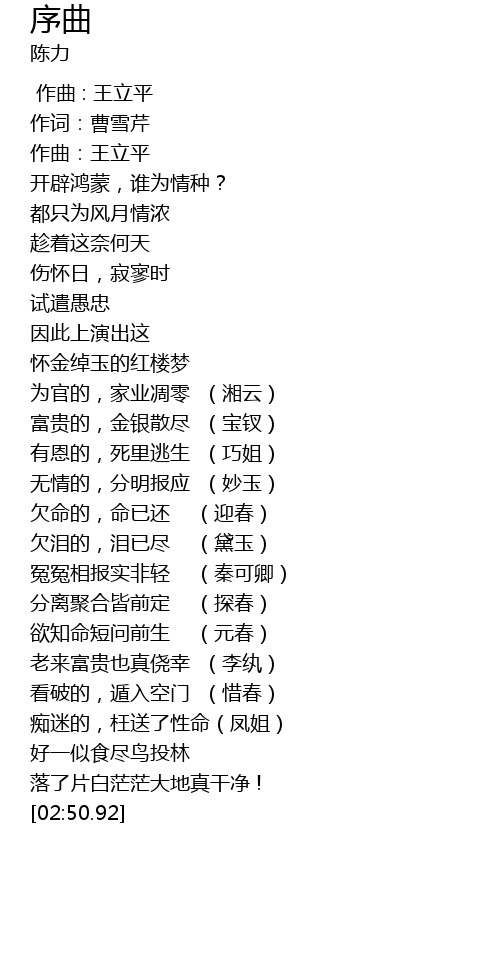 | [00:02.04] | 作词:曹雪芹 |