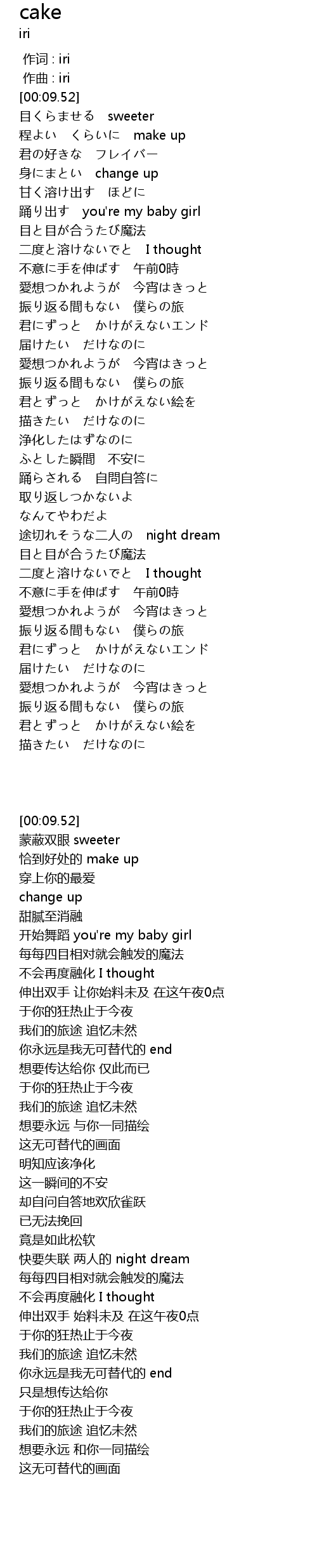 | [00:00.000] | 作词 : iri |