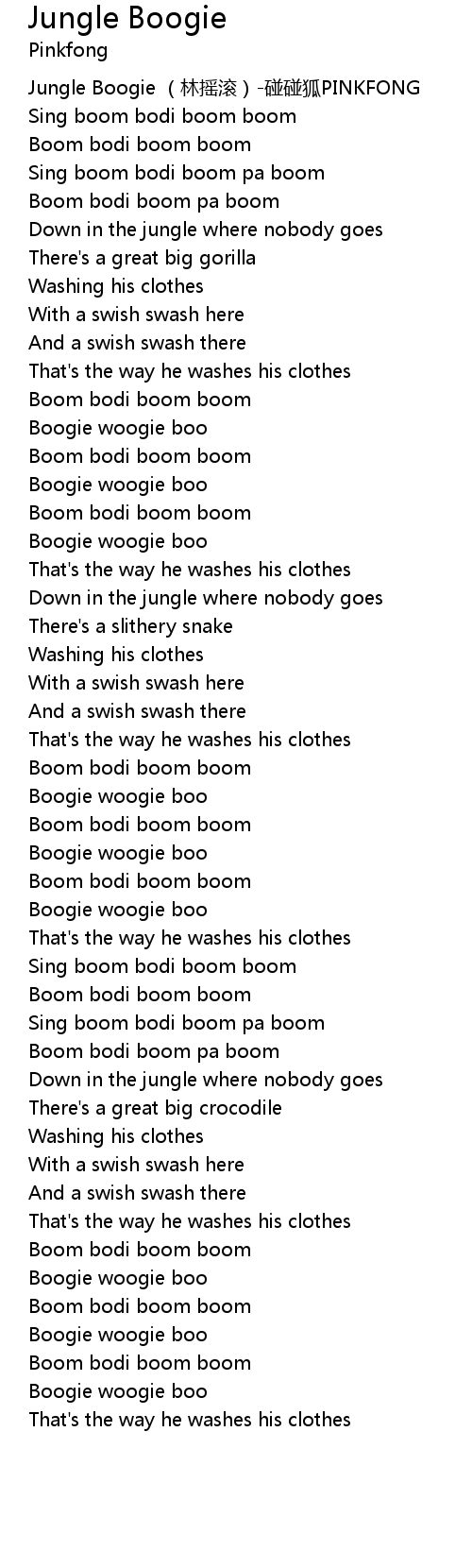 | [00:00.00] | Jungle Boogie lín yáo gǔn pèng pèng hú PINKFONG |