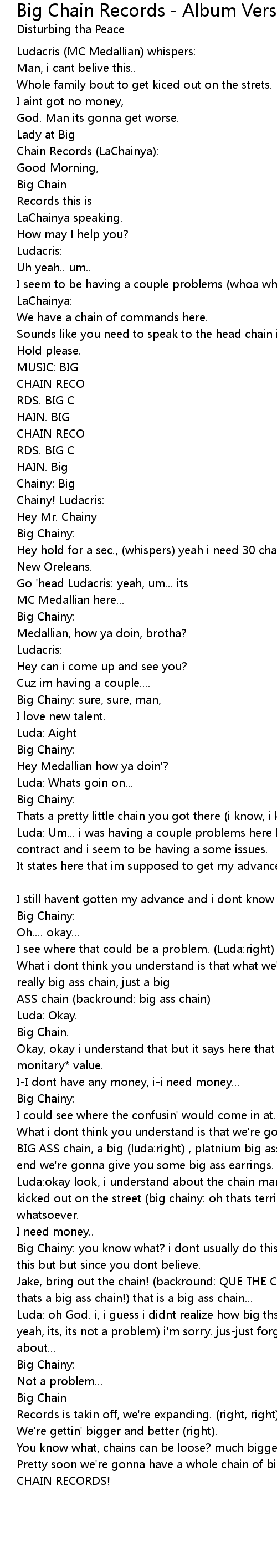 Pretty soon we're gonna have a whole chain of big ass chains (luda: alright. BIG CHAIN RECORDS! |