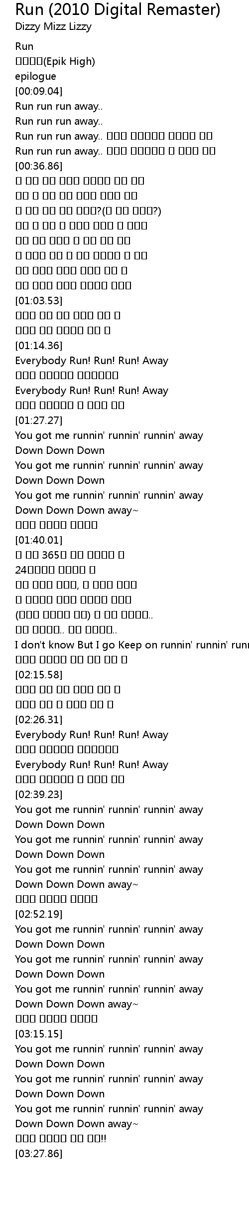 | [02:33.11] | Everybody Run! Run! Run! Away |