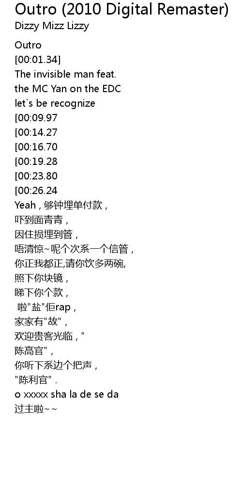 | [00:00.00] | Outro |