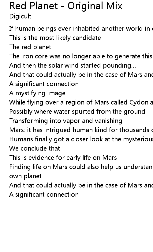 | 歌曲 | Red Planet - Original Mix |