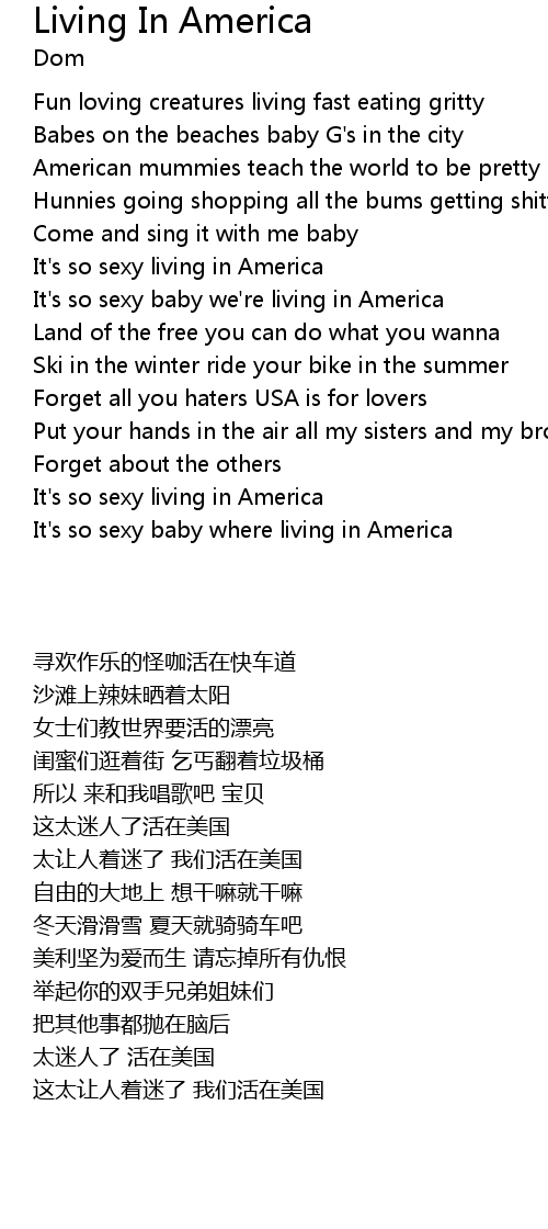 It's so sexy baby we're living in America |