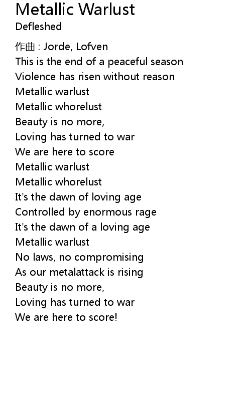| 歌曲 | Metallic Warlust |