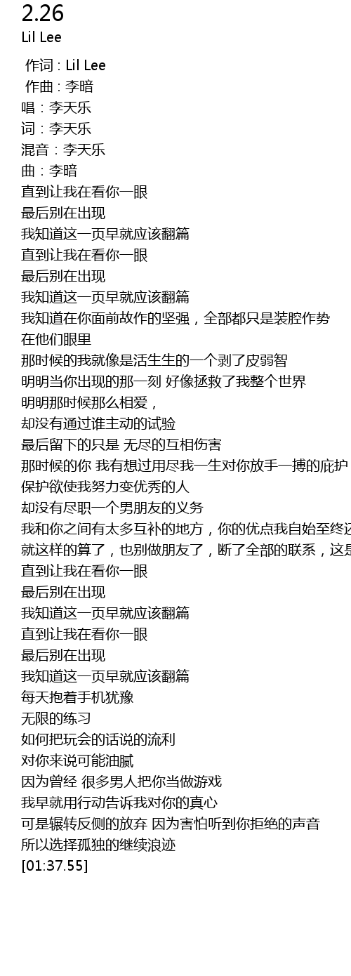 | [00:00.000] | 作词 : Lil Lee |
