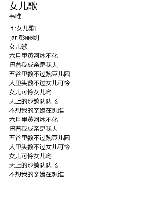 | [00:07.190] | 女儿歌 |